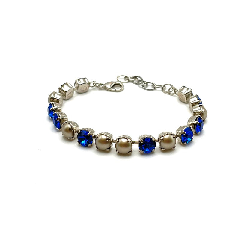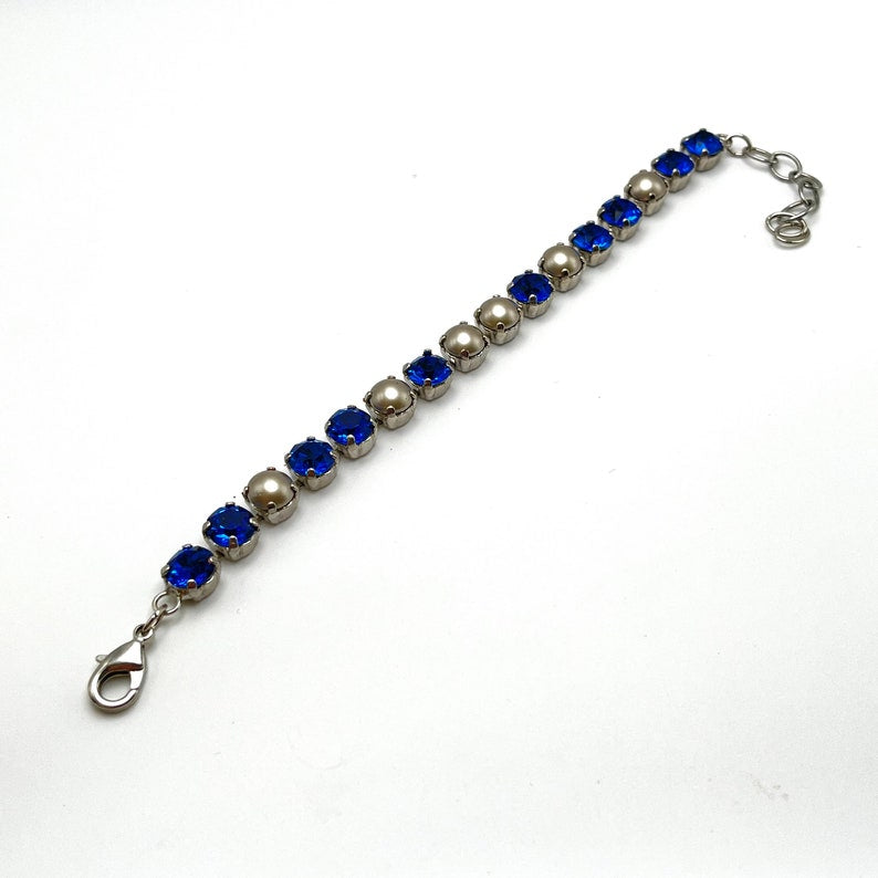 European Crystal Bracelet, Blue Crystals with Faux Pearls, Handcrafted Bracelet, Rhinestone Bracelet, Sparkling Crystals.