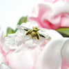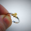 One of our customer favorites. This ring is hand crafted in our Ohio studio. The 6 x 7mm brass bee is plated with 24kt gold and mounted with silver solder to a 12ga hand formed band.